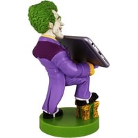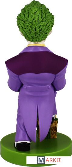 Фигурка-держатель для смартфона, портативной приставки или геймпада. Джокер (c англ. Joker — шутник, балагур) — суперзлодей вселенной DC Comics, главный и заклятый враг Бэтмена. Джокер носит фиолетовый костюм и сражается при помощи предметов, которые стилизованы под реквизит клоуна и иллюзиониста.Биллу Фингеру, Бобу Кейну и Джерри Робинсону приписывают создание Джокера, но их мнения о задумке персонажа различаются, каждый из них выдвинул свою версию событий. По утверждениям Фингера, Кейна и Робинсона, Фингер предложил взять за основу образа Джокера персонажа Гуинплена (человек с обезображенным лицом, на котором постоянно появляется улыбка) в исполнении Конрада Фейдта из фильма «Человек, который смеётся», а Робинсон сделал набросок игральной карты с лицом Джокера.Прошлое Джокера остаётся покрытым тайной до сих пор, несмотря на восьмидесятилетнюю историю персонажа. DC продолжает придерживаться теории Алана Мура о многовариантном прошлом зловещего клоуна. Возможно, даже сам Джокер уже не помнит, кем он был до той ночи, когда он надел Красный Колпак. По признанной канонической версии человек, ставший Джокером (возможно, он был неудачливым комедиантом, а возможно, и гангстером), упал в кислоту, испугавшись Бэтмена, когда в костюме Красного колпака участвовал в ограблении карточной фабрики. В результате он сошёл с ума, обрёл белую кожу, чёрные круги вокруг глаз и зелёные волосы, а на лице у него навсегда застыла улыбка.