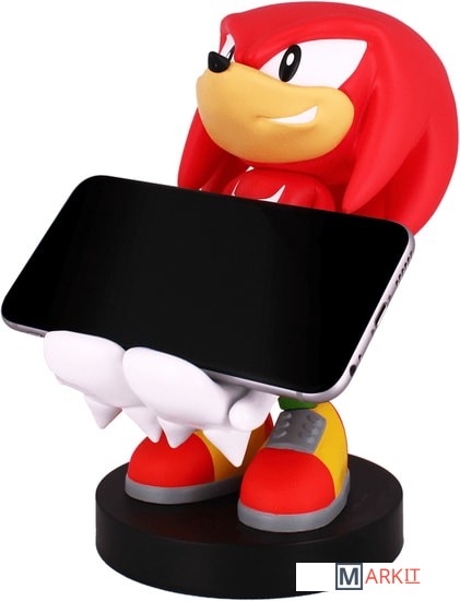 Фигурка-держатель для смартфона, портативной приставки или геймпада. Подставка Cable guy: Sonic: Knuckles. Ехидна Наклз — персонаж видеоигр, телешоу и комиксов серии Sonic the Hedgehog. Его прозвища — «Knuckie», «Rad Red», «Red Storm», «Knux», и «Knucklehead». Создан Такаси Юдой. Первое появление — игра Sonic the Hedgehog 3.Наклз — один из самых сильных персонажей серии. Его сила позволяет ему, например, пробивать дыры в толстой стали, разбивать камни на маленькие кусочки и поднимать предметы, во много раз превышающие его собственный размер и вес. Он умеет парить в воздухе, карабкаться по вертикальным поверхностям и закапываться в стены и землю (с помощью боевых рукавиц или когтей для копания). В нескольких основных сюжетных линиях он также обладает такими способностями энергии Хаоса, как открытие порталов; возможность ощущать присутствие Изумрудов Хаоса на расстоянии; доступ к энергии Мастер Изумруда. В отличие от Соника, Наклз умеет плавать. Также он, как Соник, умеет делать Spin Dash и Spin Jump. В Sonic X во втором сезоне он демонстрировал вихревую атаку, подобно вихревому пинку Руж, а также во втором и третьем сезонах — парное вращение с Соником.