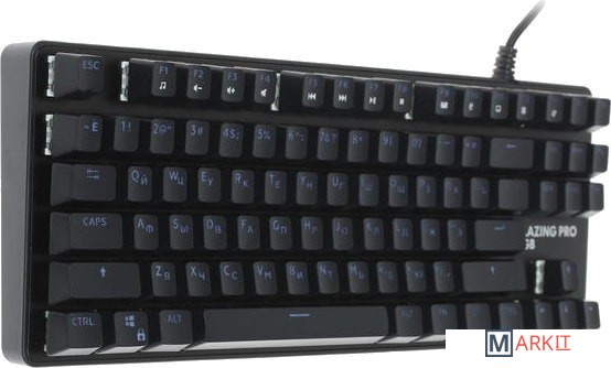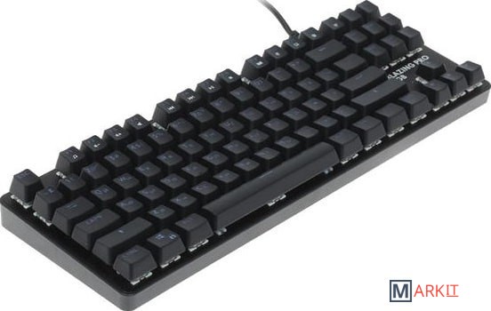 Клавиатура DEXP Blazing Pro RGB обладает габаритами 355x35x125 мм (ширина, высота и глубина соответственно), благодаря чему ее можно удобно разместить даже на небольшом рабочем столе. Вес, равный 665 г, обеспечен металлическим исполнением корпуса. Модель относится к проводному типу: для ее подключения к компьютеру используется кабель USB, длина которого соответствует 1.8 м. Благодаря тканевой оплетке шнур меньше спутывается и не перетирается о край стола. Компактный корпус устройства имеет матовое покрытие, благодаря которому на нем менее заметны отпечатки пальцев. В клавиатуре DEXP Blazing Pro RGB предусмотрена защита от брызг воды. Имеется клавиша функций (Fn), которая существенно расширяет возможности устройства. Механическая модель оснащена переключателями Outemu Blue, которые обеспечили ей долговечность и большой ресурс нажатий без "эффекта усталости". Всего в этой клавиатуре предусмотрено 87 клавиш, из которых 11 отвечают за мультимедиа-функции и установку макросов. Имеется разноцветная подсветка.