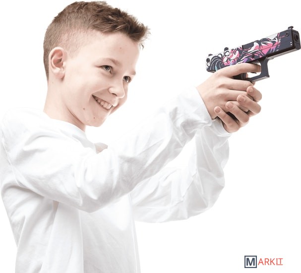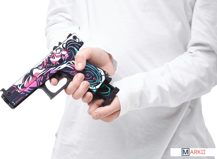 Давайте поиграем? Какое самое первое оружие в Counter Strike получает игрок в команде террористов? Правильно! Угадали. Конечно же, это Glock-18. Этот полуавтоматический пистолет очень удобен,этоGlock-18.Этотполуавтоматическийпистолеточеньудобенвиспользованииихорошосправляетсяснезащищеннымипротивниками.ТеперьдлякаждогофанатасерииCS:GOунасестьпрекрасныйаналогглокаввидедеревянногорезинкострела.Этоабсолютнобезопасныйдлялюдейигрушечныйпистолет,которыйстреляетрезинкаминарасстояниедом10.Сцельюбережногоотношениякмеханизмаморужиярекомендуемзаряжатьегоединовременнонеболее8резинками.Авесьостальнойзапас“патронов”легкопоместитьсяввыдвигающемсямагазине.Новыневолнуйтесь,нашглокизлинииActiveсделанпрактическинеубиваемым.Всемеханизмыдвигаютсязасчетпрочногокрепленияболтами.Крометого,чтодеревянныйGlockполностьюкопируетформунастоящегопистолета,такещеинанихсовершенноточновоспроизведеныскинысерииCS:GO.ПосмотритенаНеоНуар*(Neo-Noir).Высразужеузнаетеэтотскинпоизображениямвстиленеонуарныхкомиксов.Можетбыть,этоотсылкакизвестномукриминальномутриллеру?Эффектносмотритсянакорпусепистолеталежащаятемноволосаядевушка.Черно-белаякартинкадополненадеталямирозового,фиолетовогоиголубогоцветов.НазатворевозледуларасположенанадписьG18NOIR.Размерыигрушки:Длина17.см6,высотасм12,ширина2,см4.Вкомплектеидет20резинок.