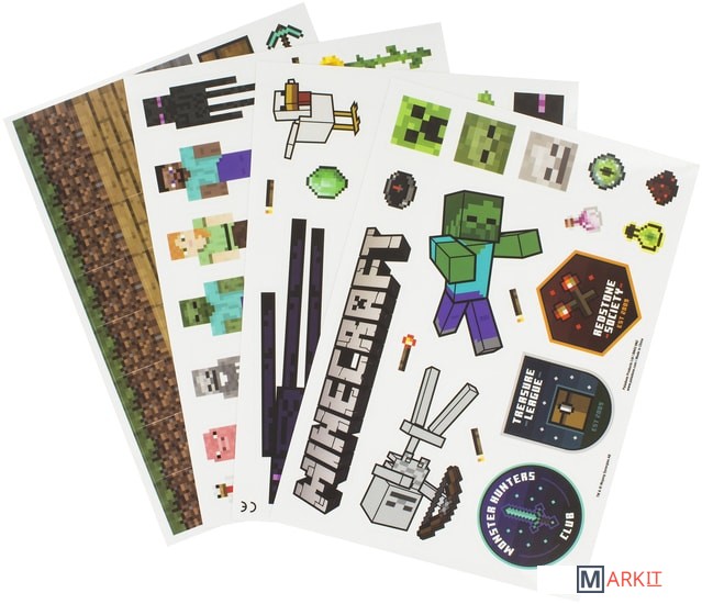 Minecraft — компьютерная инди-игра в жанре песочницы, разработанная шведским программистом Маркусом Перссоном и выпущенная его компанией Mojang AB. Перссон опубликовал начальную версию игры в 2009 году, а в конце 2011-го была выпущена стабильная версия для ПК. В последующие годы Minecraft была портирована на Linux и macOS для персональных компьютеров, на Android, iOS и Windows Phone для мобильных устройств, на игровые приставки PlayStation 4, Vita, VR, Xbox One, Nintendo 3DS, Switch и Wii U. В 2014 году Microsoft приобрела Mojang AB и права на Minecraft за 2,5 миллиарда долларов.Официально лицензированная продукция в красочной упаковке. Идеально подходит для кастомизации смартфонов, планшетов, ноутбуков, консолей и других гаджетов. Наклейки водоустойчивы и их можно неоднократно переклеивать.