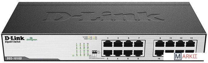 Markit » Коммутаторы » Неуправляемый коммутатор D-Link DGS-1016D/G3A