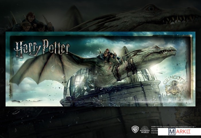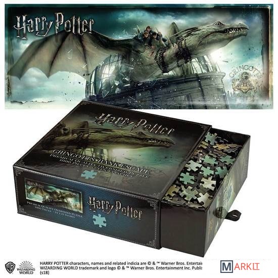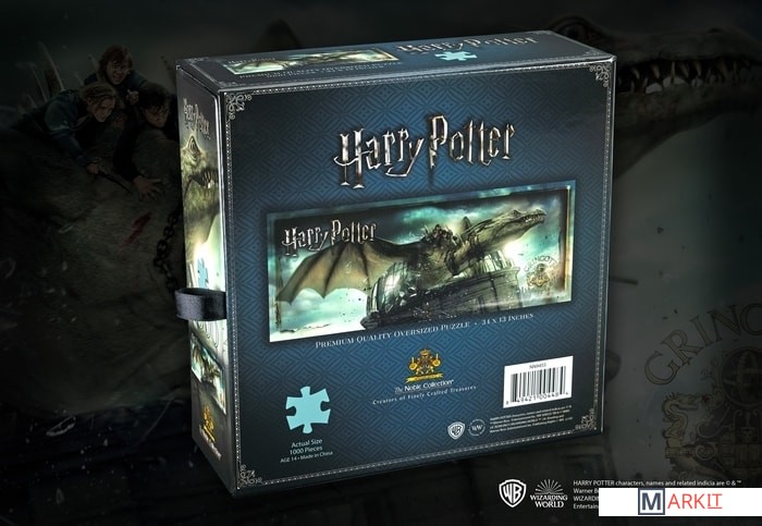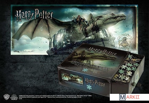 Пазл премиального качества, изображающий бегство Гарри, Рона и Гермионы из волшебного банка «Гринготтс» на спине украинского железнобрюхого дракона. Пазл состоит из 1 000 деталей, в собранном виде его размеры составляют 86 на 33 см. Произведено по официальной лицензии Warner Brothers.