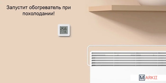Максимально простое устройство. Датчик измеряет температуру и влажность воздуха у вас дома. Все показания видны на маленьком экранчике. В комплекте есть скотч для крепления на стену, шкафчик или куда вам захочется.Наличие батарейки CR2032 в комплекте зависит от партии поставки.У датчика есть Bluetooth. С помощью него датчик синхронизируется с Mi Home на смартфоне, где рисуются красивые графики погоды в доме. Можно посмотреть статистику за день, месяц и полгода. Но работает только в радиусе действия Bluetooth.Чтобы просматривать показания температуры и влажности через интернет, вам понадобится хаб для умного дома. Он будет все время держать связь с датчиком. Благодаря такой связке открываются возможности для домашней автоматизации. Например, чтобы при снижении температуры или влажности автоматически включался увлажнитель или обогреватель дома.