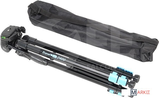 Falcon Eyes Travel Line 2400 —3-х секционный штатив с 3D-головкой, пузырьковым уровнем и выдвижной центральной колонной. Максимальная высота 157 см, нагрузка до 3 кг.
